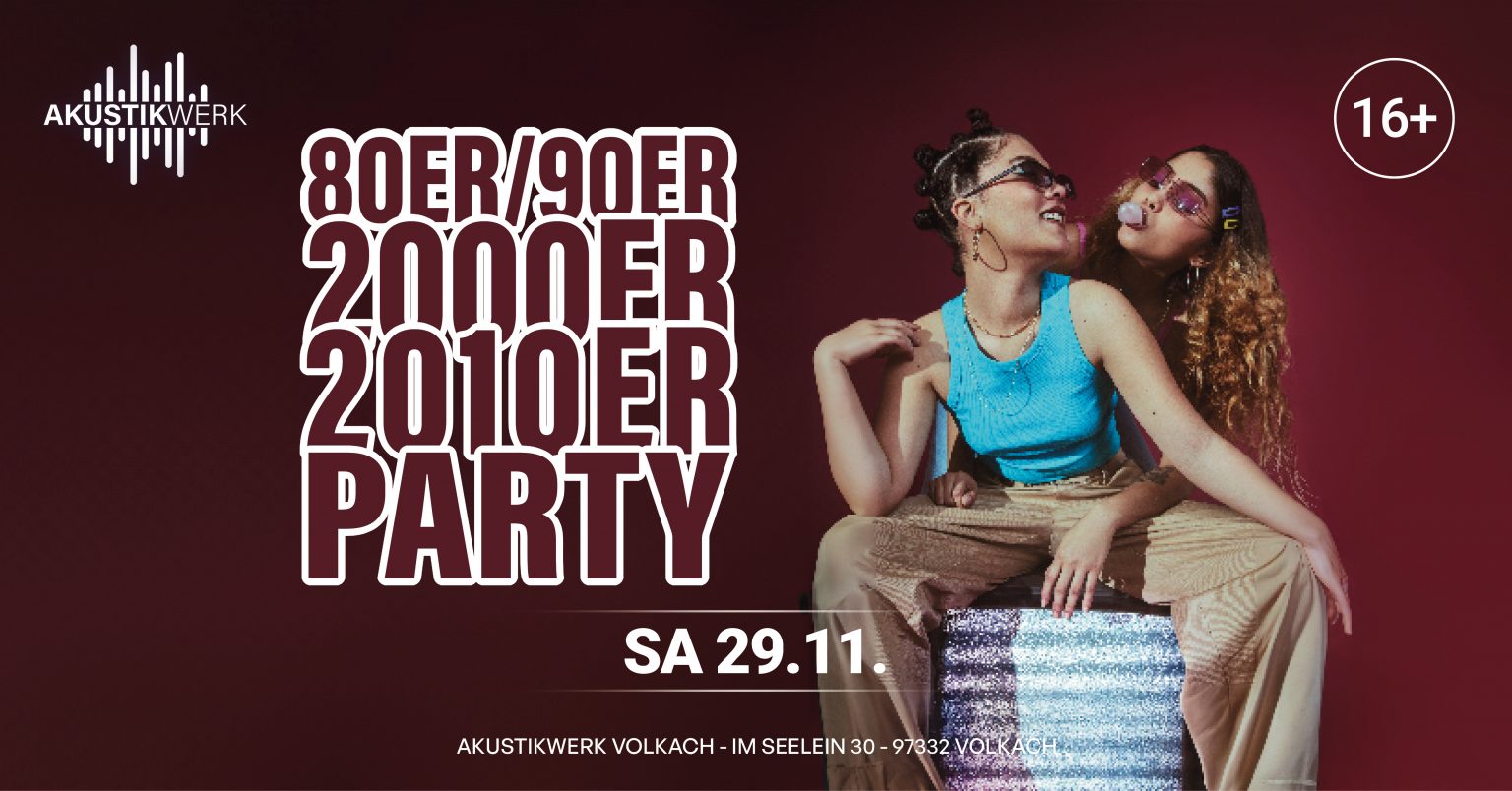 Wir reisen zurück in die 80er, 90er, 2000er und 2010er – eine Zeit, die unsere Jugend geprägt hat. Heute feiern wir diese unvergesslichen Jahre zusammen! Pack deine Freunde ein und macht euch bereit, das Lebensgefühl von damals wieder aufleben zu lassen!